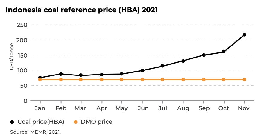 Local price capped at $70/tonne has made Domestic Market Obligation (DMO) hard to achieve. Coal mining companies prefer to export their coal. As a result, only 46% of the 137.5 million tonnes of coal DMO quota in 2021 had been fulfilled.