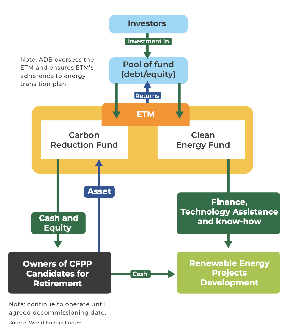 Considering the urgency of CFPP retirement, ADB has established a new mechanism called the Energy Transition Mechanism (ETM). Under this mechanism, Indonesia, the Philippines, and Vietnam will be offered financial assistance from ADB to early retire their coal fleet. A pilot project has been planned for five to seven CFPPs in these three countries.